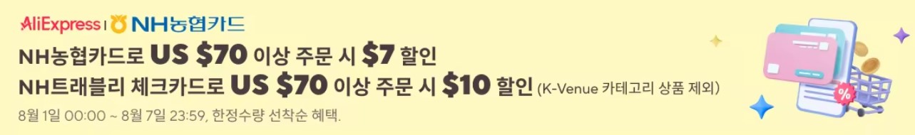 - NH트래블리 체크카드로 $70 이상 주문 시 $10 할인